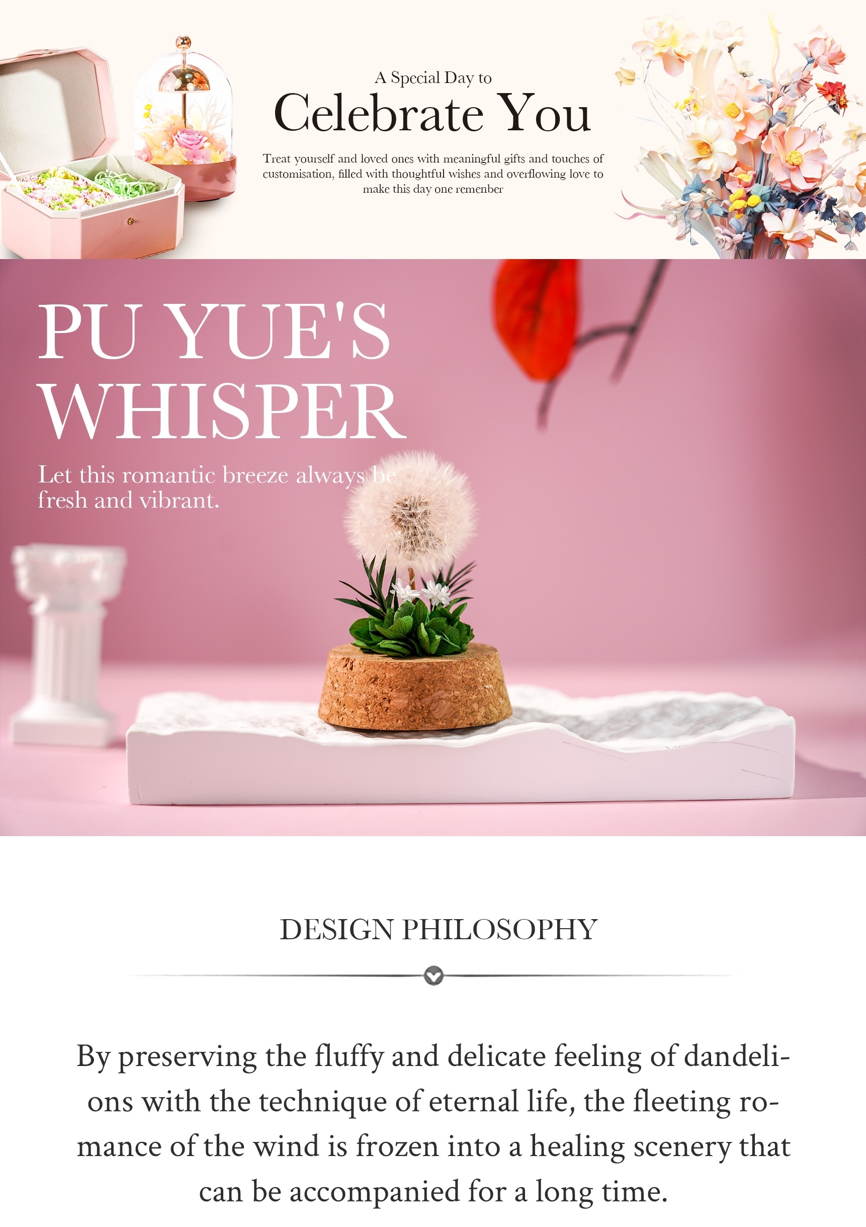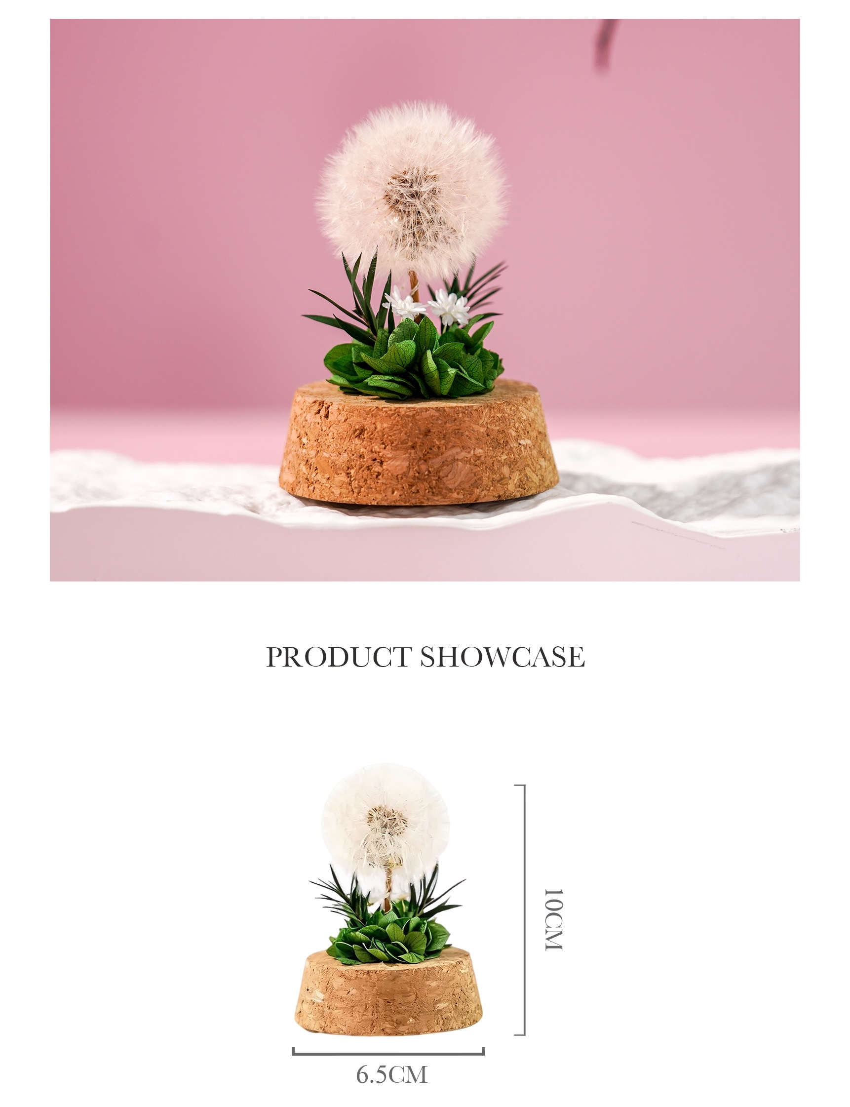 A delicate preserved dandelion under a clear dome captures its airy, whimsical charm in eternal bloom. Symbolising wishes, hope, and lasting dreams, this graceful arrangement brings serenity and joy — a thoughtful and romantic gift.