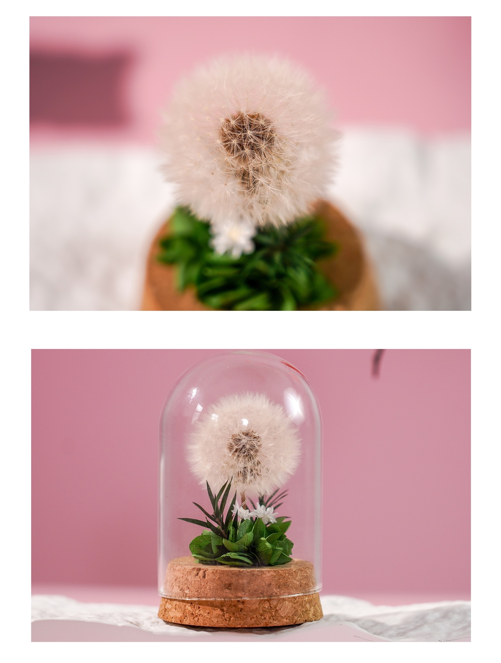 Dandelion Preserved Flower in Glass Dome