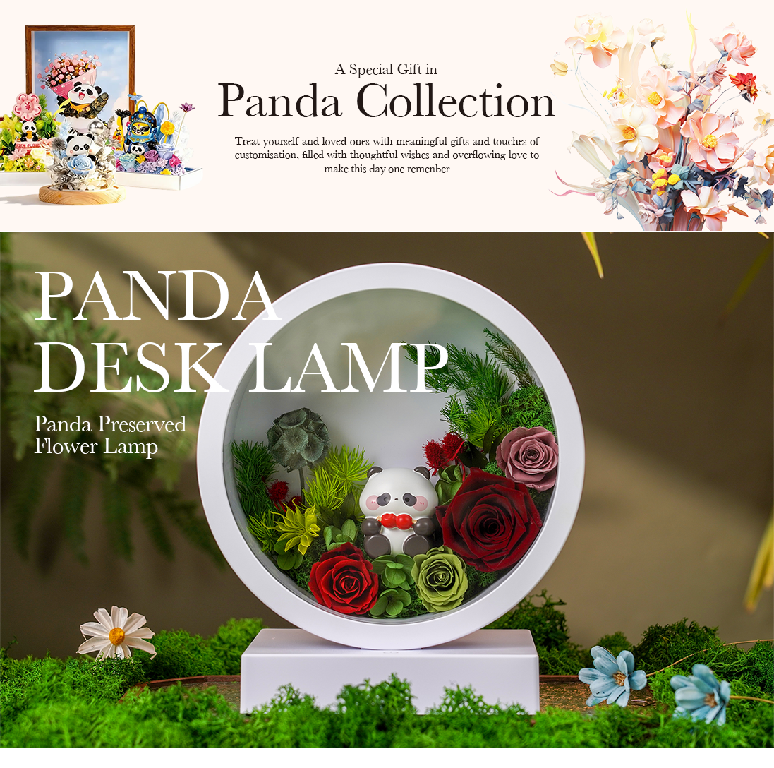 Panda LED Bedside Table Lamp with Preserved Flower