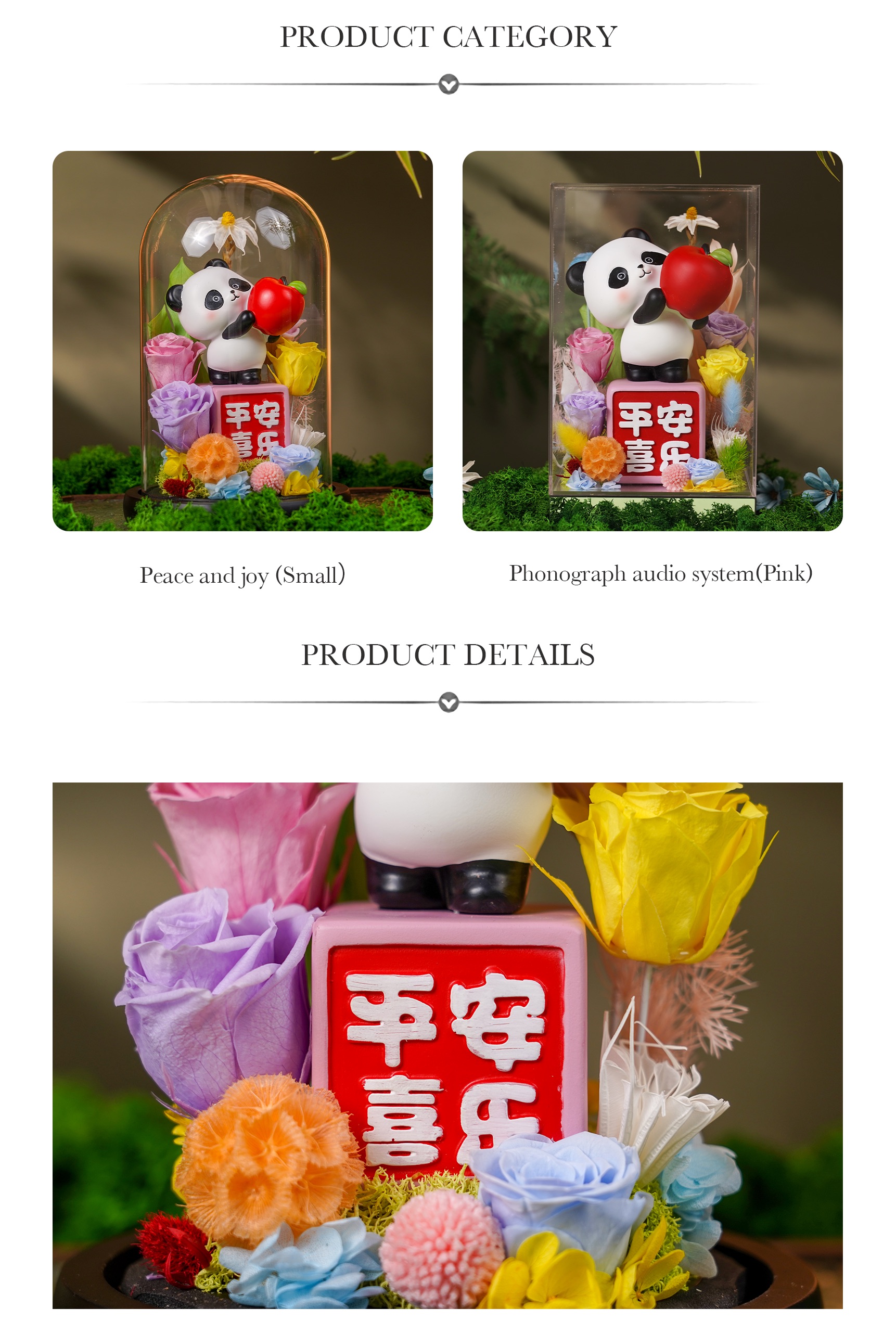 Bring peace and joy this Chinese New Year with a cute panda holding the Apple of Blessings. A preserved flower gift that spreads good fortune.