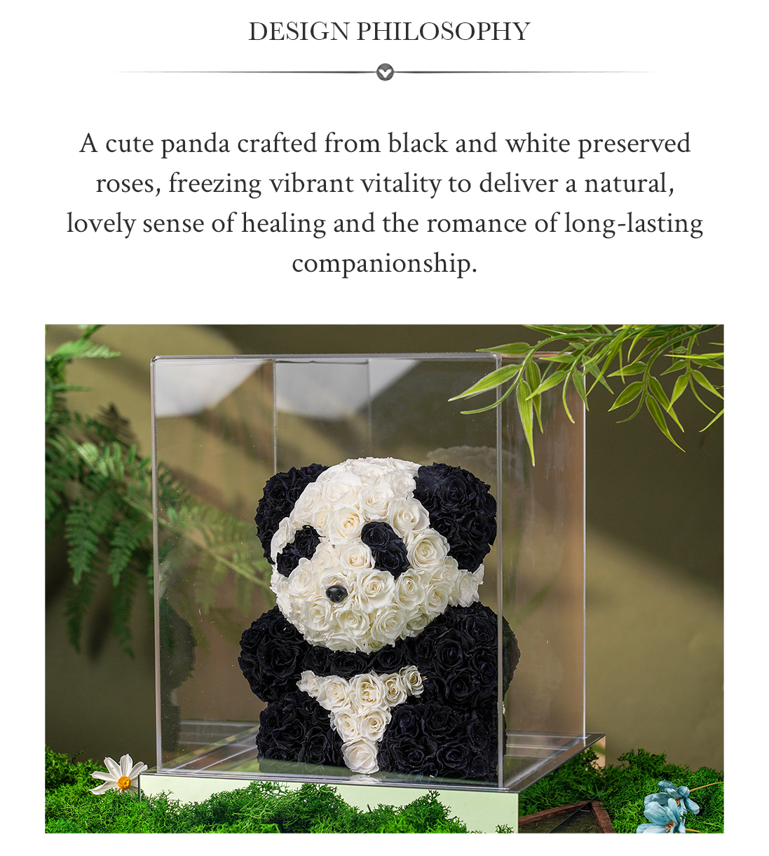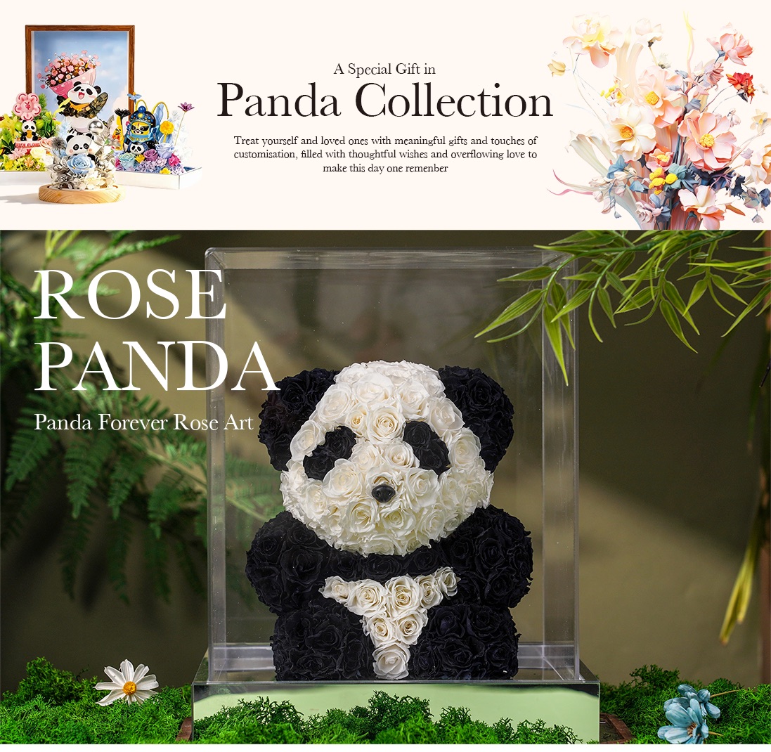 Celebrate love and charm with this Preserved Flower Panda Collection. Featuring 3D black-and-white panda designs with real, everlasting roses, it makes a special present for her.