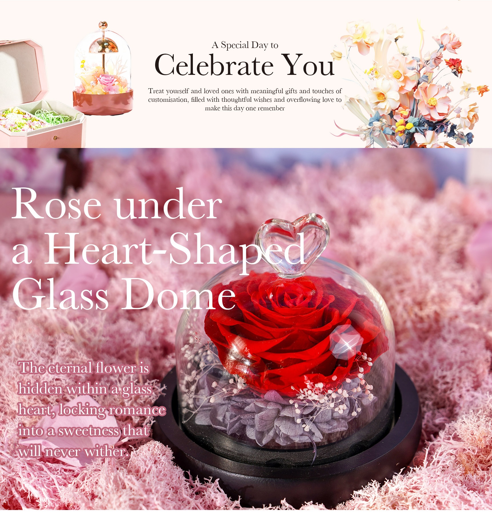 Our premium preserved roses are delicately crafted to stay beautiful for years, capturing the warmth of love that never fades.